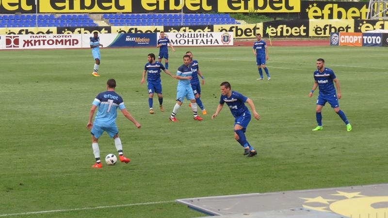 Монтанци натиснаха още от първата минута, но първата опасна ситуация стана пред вратата на Ивайло Василев. В 6-та мин. Жил Лоусън се озова очи в очи с вратаря, но Василев спаси. И след това атаките на домакините следваха една след друга, а гостите дебнеха на контра. След половин час игра Атанас Илиев влезе в пеналта и стреля опасно, но покрай гредата. Минута по-късно обаче централният нападател на Монтана попадна в прегръдките на своите съотборници. Тогава вратарят Стамен Бояджиев изби силния шут на Даниел Георгиев, но при добавката Илиев я изпрати в мрежата. Три минути преди почивката Жил Лоусън отново бе изпуснат от защитата на домакините и с удар покрай вратаря изравни.