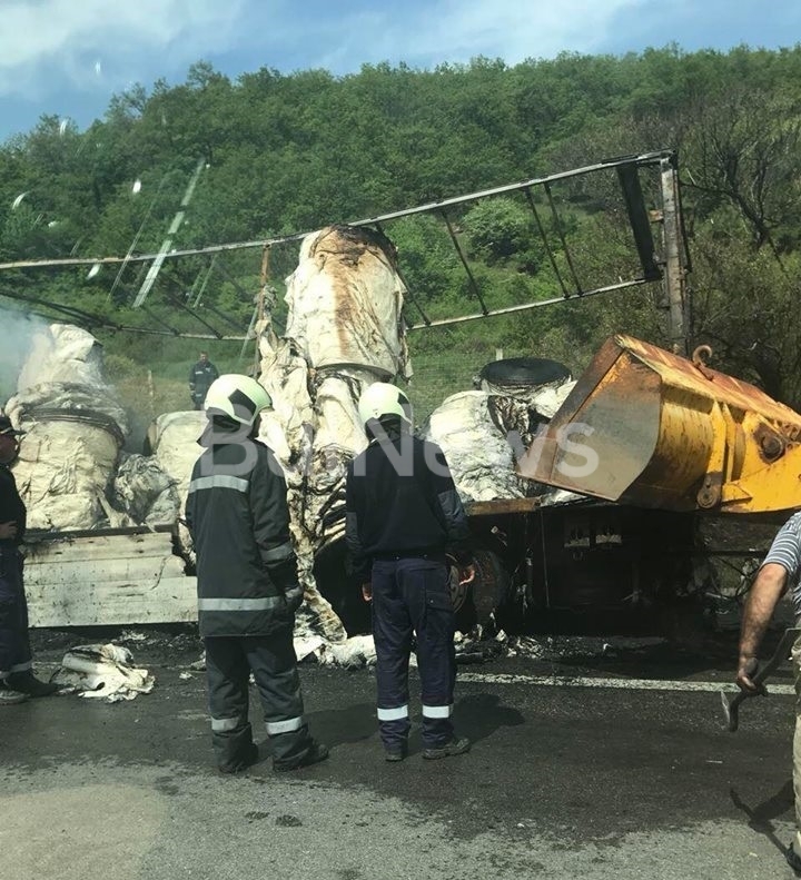 От последните минути: Тир гори на магистрала „Хемус“, движението е блокирано /видео и снимки/
