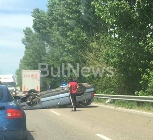 Извънредно! Кола се обърна по таван на главен път Е-79 край Видин /снимки/