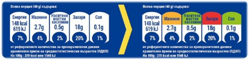 - Европейските потребители като цяло предпочитат етикиране „на порция“ пред етикиране „на 100g“, когато става въпрос за сравнение на съдържание на хранителни вещества на различни продукти, използвайки етикет с цветово кодиране