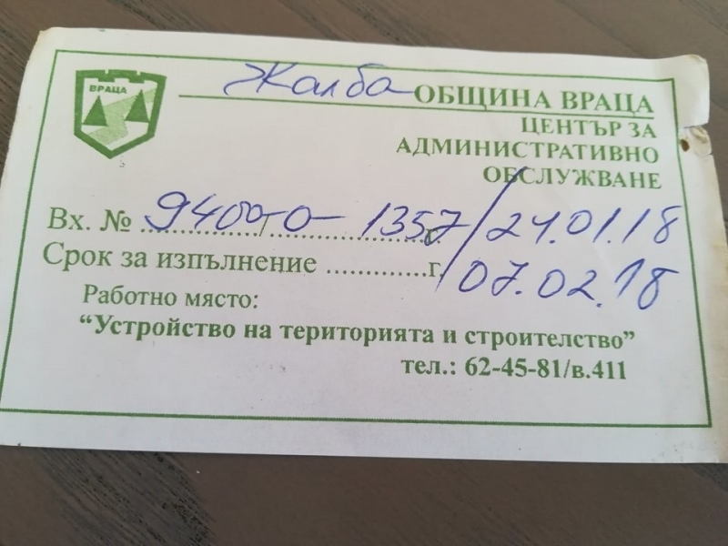Близо 30 години хората си живели спокойно и без конфликти. Наскоро обаче срещу семейството била подадена жалба за незаконната постройка. В имота им дошла на оглед комисия от община Враца, която заявила, че сградата трябва да бъде съборена.