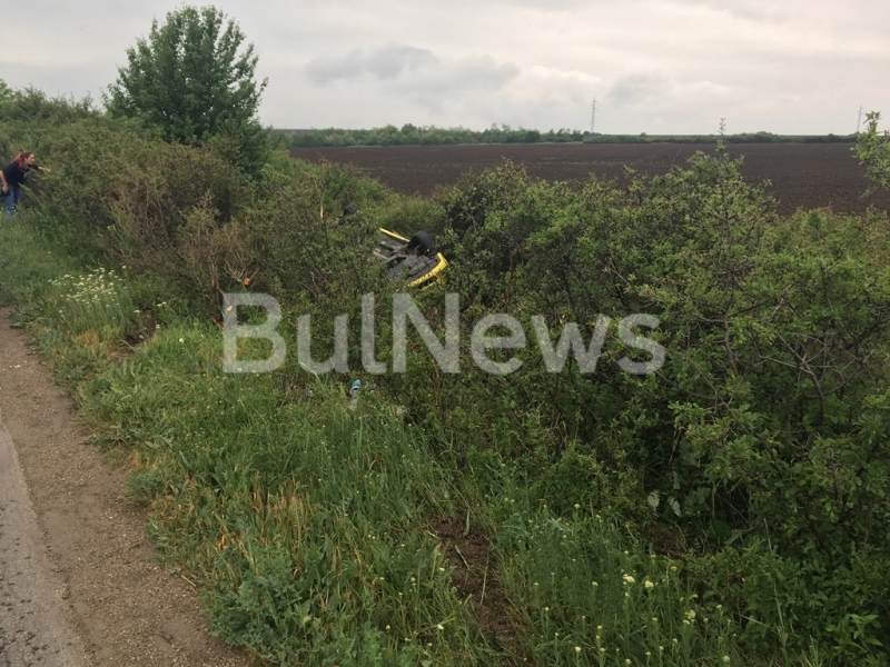 Не е ясно кога е станал тежкия инцидент. Тази сутрин минаващи по натовареното шосе шофьори забелязали преобърнатата жълта кола и подали сигнал в полицията. Екип от униформени в момента е на местопроизшествието и разследва мистериозната катастрофа.