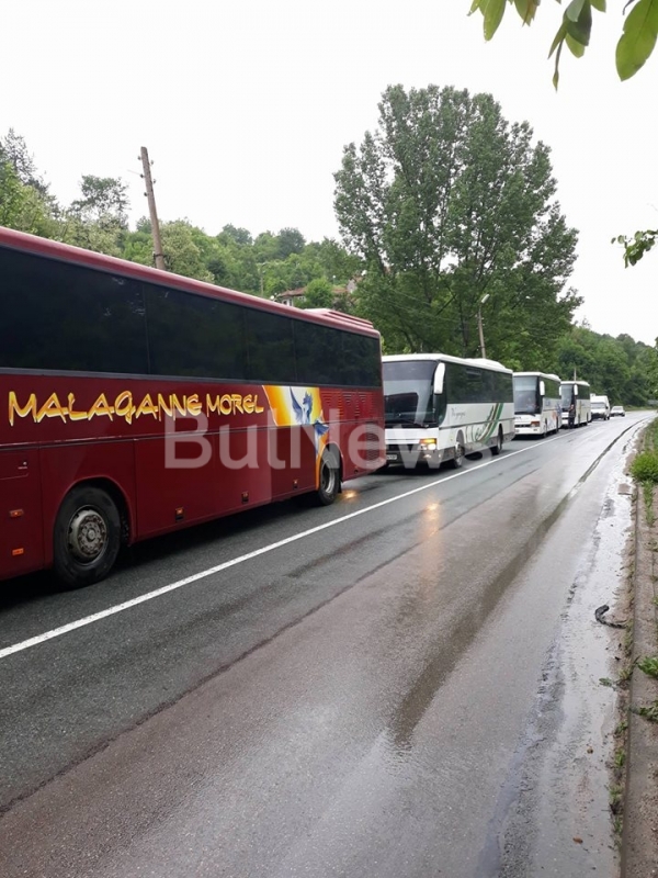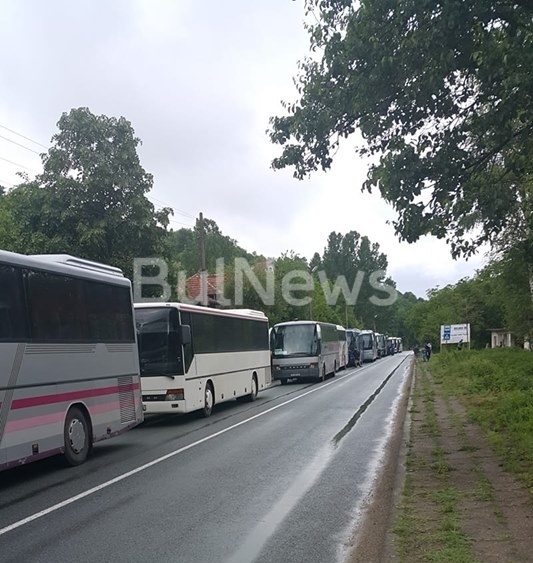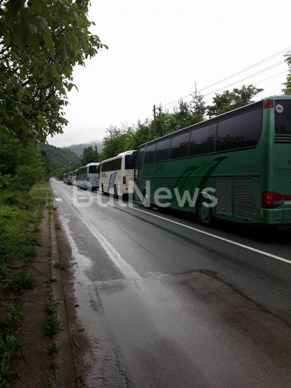 Заради произшествието в двете посоки на международния път са се образували огромни колони. За късмет огромната машина се е обърнала точно до отбивка и отстрани е останало малко място. Полицейски служители пропускат поетапно леки автомобили. За останалите участници в движението обаче преминаването е невъзможно.