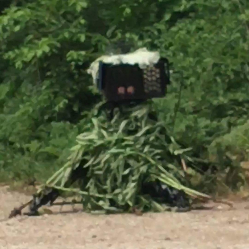 Униформените решили да поставят чудовището на КАТ до крайпътни храсти и да го покрият с листа. Куриозната гледка е заснета от пътуващи по пътя между София и Луковит. С цел да не бъде видяно от далеч устройството и да успее да улови повече нарушители, ченгетата го маскирали като храст.