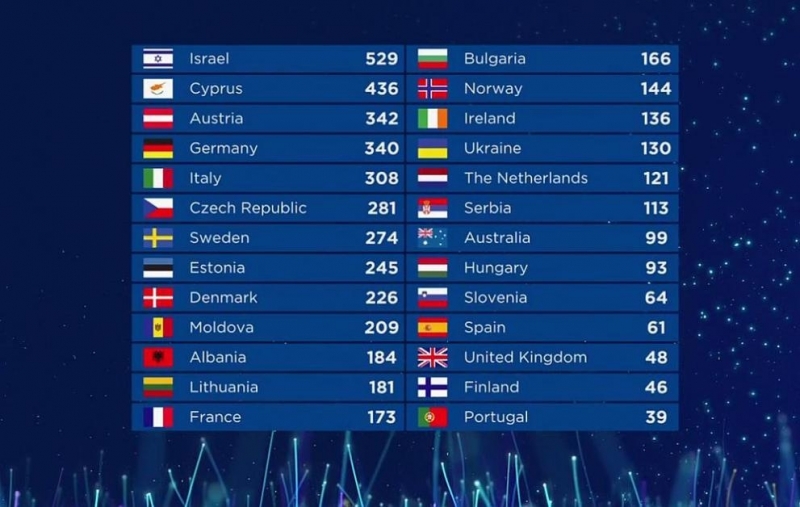 Израел стана победител в конкурса. Певицата Нета победи с песента "Toy" ("Играчка"). След гласуването на националните журита и от телевота парчето получи общо 529 точки. Нета Барзилай от Израел е 25-годишна певица и до скоро се е изявявала на сватбени празненства, а сега не само разкри таланта си пред 200 милиона зрители от цял свят, но и спечели "Евровизия".