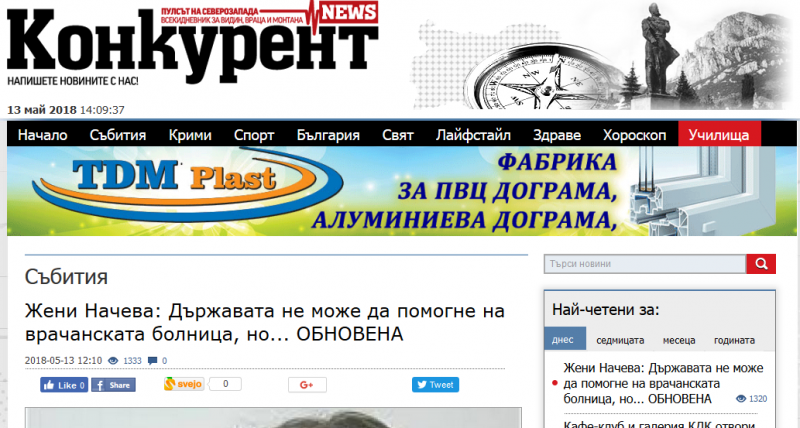 Електронното издание на врачанския вестник „Конкурент“ продължава със завидна упоритост да манипулира читателите си за събитията около врачанската болница, установи мониторингът на агенция BulNews.bg. Вчера в сайта бе направен поредният опит хората да бъдат заблудени за бъдещето на лечебното заведение.