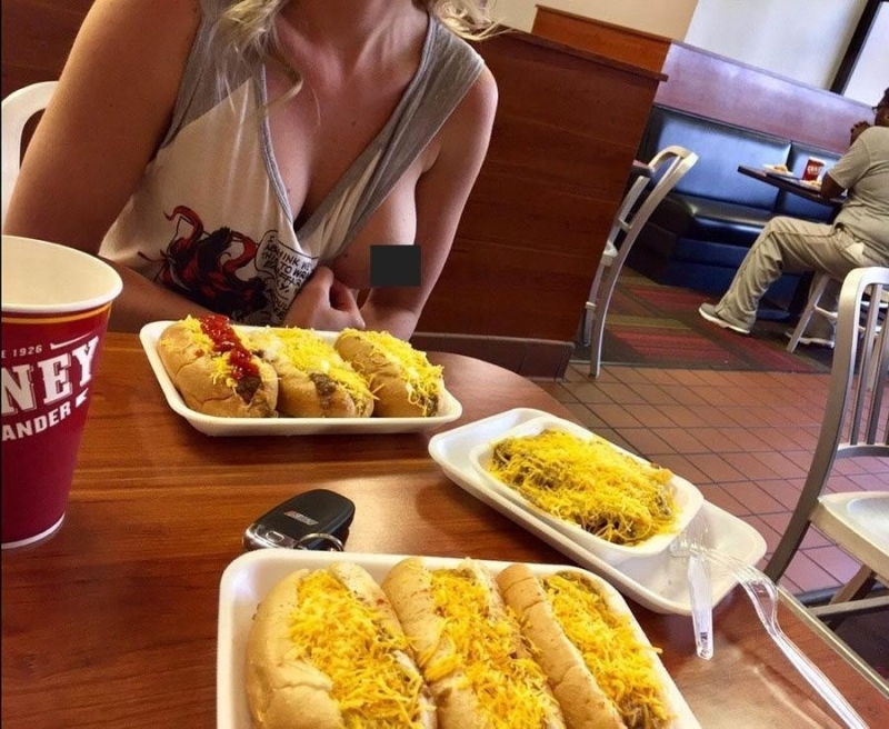 В социалните мрежи се появи нова откачена мода - девойки от цял свят качват откровени снимки, на които заголват гърдите си в ресторанти. При това другите посетители, съдейки по снимките, не обръщат внимание на ставащото, пише The Sun.