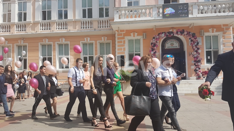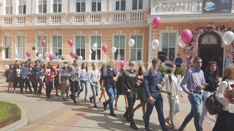 Абитуриентите на СУ "Христо Ботев" дефилираха по центъра на Враца /снимки и видео/