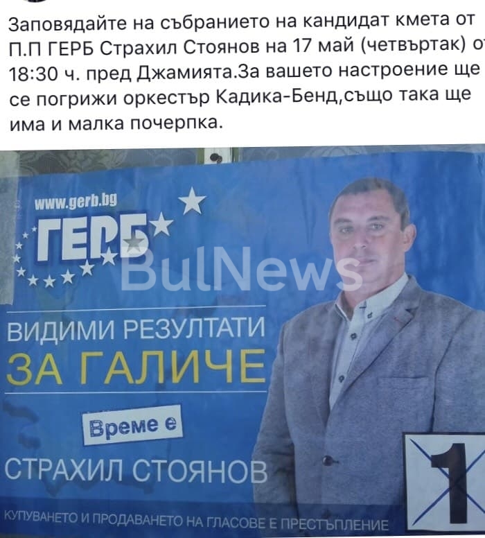 Кандидат за кмет на Галиче прави предизборен митинг пред селската джамия