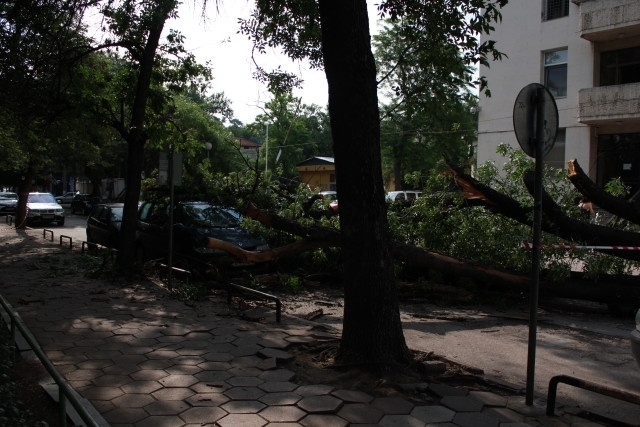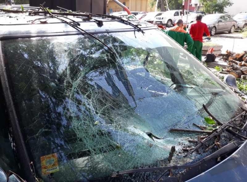 Дърво се стовари върху автомобил в центъра на Пловдив, предаде bTV.