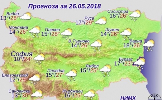 В сутрешните часове на съботния ден над по-голямата част от страната ще преобладава слънчево време, но в отделни котловини ще е с намалена видимост. През деня ще остане неустойчиво и още преди обяд над източните, а по-късно през деня и до полунощ и над останалата част от страната ще се развива купеста и купесто-дъждовна облачност.
