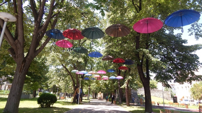 Разноцветни чадъри красят от днес парк "Рова" във Видин и привличат вниманието на разхождащите се там граждани. Сто чадъра в ярки цветове са закачени за клоните на дърветата. Украсата се поставя за втора поредна година в участъка от Стамбол капия до паметника на цар Иван Срацимир в центъра на града. Според жители на Видин инициативата е хубава и създава настроение.