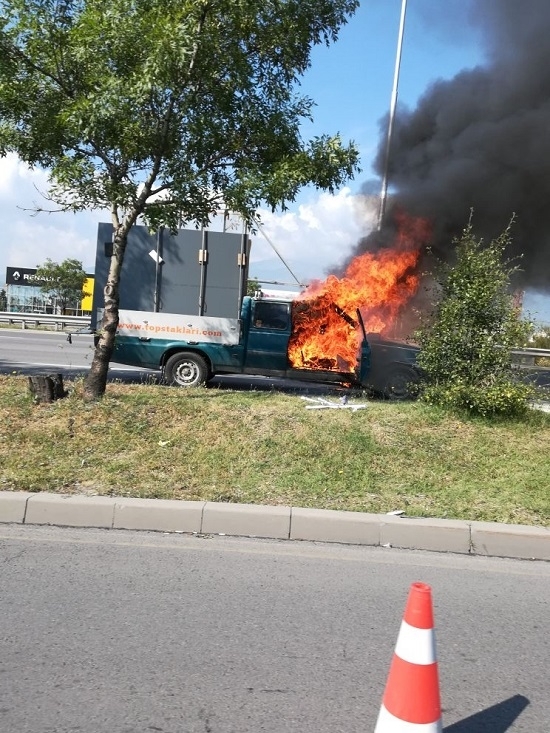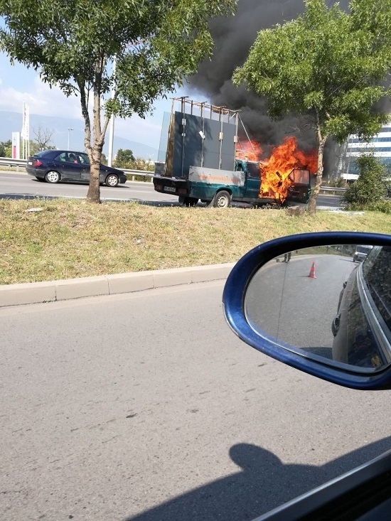 Пикап избухна в пламъци на Цариградско шосе (снимка)
