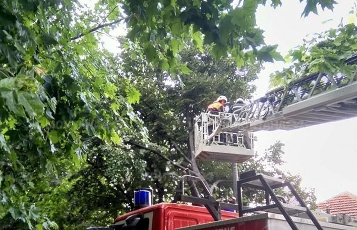Около 18.30 пожарникарите са изрязали дърво на булевард „Трети март“ след сигнал от жител, че дървото е надвесило над къщата му.