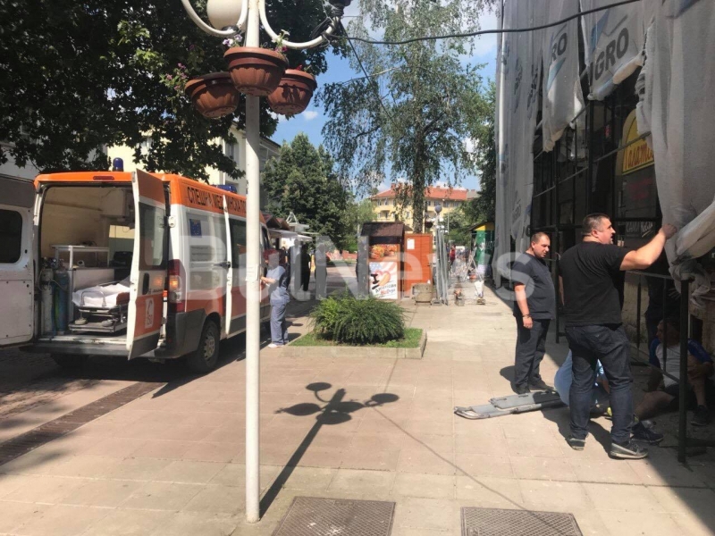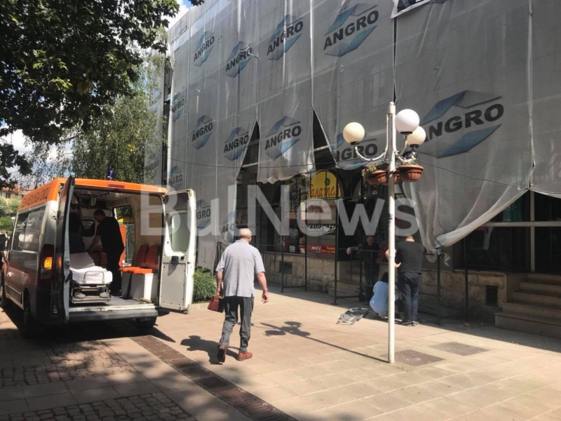 Извънредно! Работник по санирането падна от скеле в центъра на Враца, линейка лети към спешното /снимки/