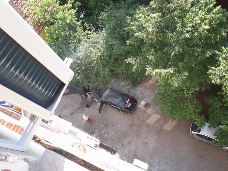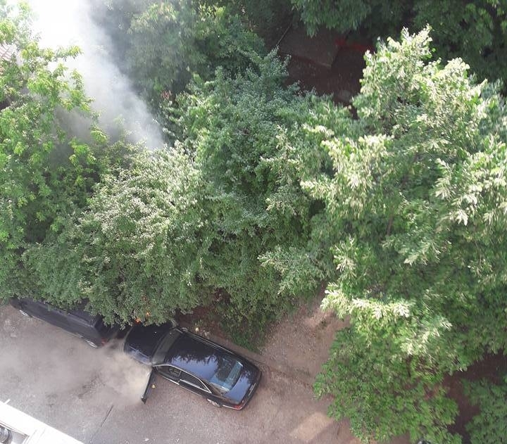 Скъпо „Ауди“ се запали пред блок във Враца, комшии тичат с пожарогасители /снимки/