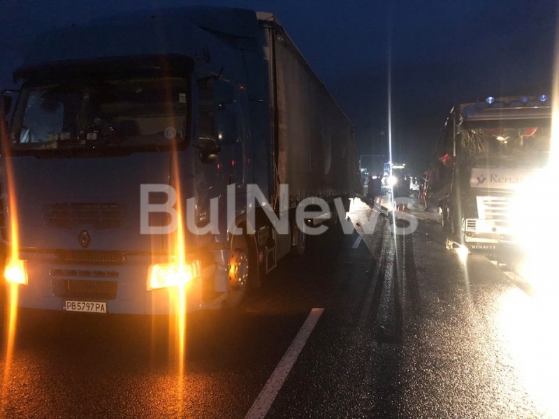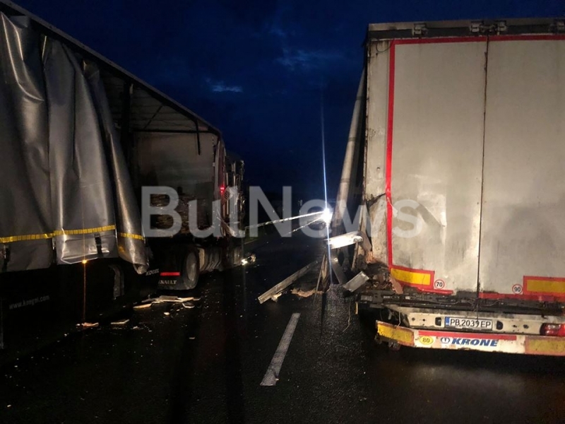 Сблъсъкът е бил толкова силен, че в радиус от 30 метра по пътното платно има разпилени части от возилата и техния товар. Двамата шофьори са се отървали невредими, но има сериозни материални щети по камионите и вероятно ще бъде необходима намесата на тежка техника, за да бъдат преместени от натовареното шосе.