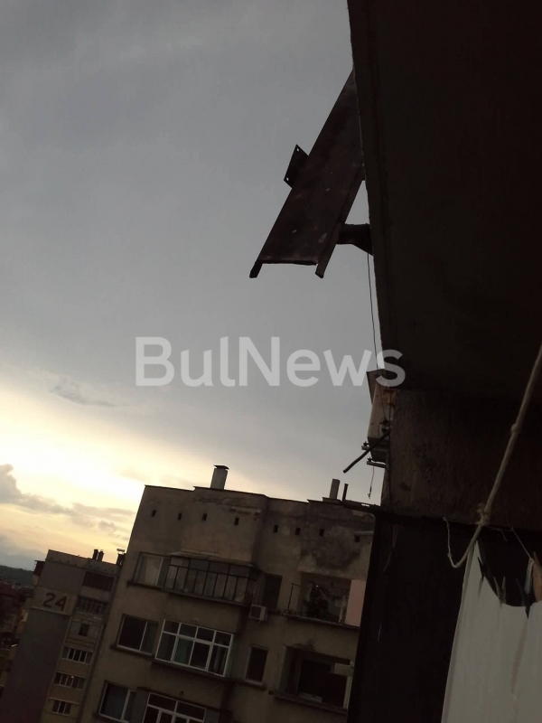 Жената разказва, че силен вятър е откъснал ламарина от покрива на блока, която заплашително виси над балконите и преминаващи покрай него хора.