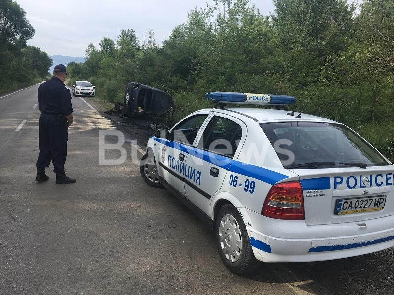 Огнен ад! Кола изгоря след зрелищна каскада край Враца /снимки/