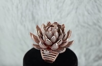 Скъпоценните камъни бяха положени върху структура от 18-каратово розово злато с форма на цвете от лотос. Бижуто тежи повече от топче за голф - около 58 грама. Цената на ювелирното произведение е 4 милиона и 116 хиляди долара.