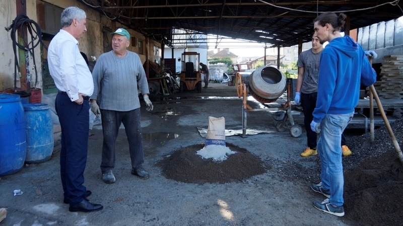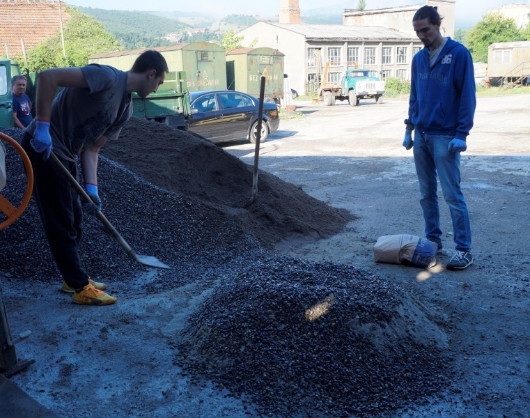 „Eдна част от студентската бригада ще работи на този обект, каза кметът инж. Генади Събков. Ще направим всичко възможно инфраструктурата да изглежда по коренно различен начин, отколкото е днес. Ще изградим бетонни тротоари, ще боядисаме оградата, ще подобрим вида района, така че собствениците и обитателите на тази сграда да имат една хубава, привлекателна инфраструктура в съседство с блока, добави той. Останалите студенти работят в зоната на ОП „Чистота“, където изработват бетонови изделия“.