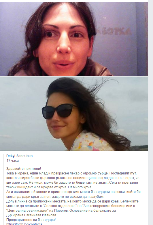 Отчаян апел от майката на д-р Ирена Иванова: Нуждаем се от кръв, много кръв!