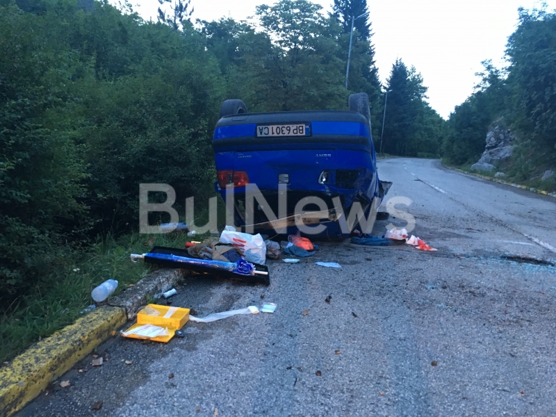 Тежка катастрофа е станала преди минути край Враца, видя само репортер на BulNews.bg. Кола се е обърнала на пътя от пещерата Леденика, като при жестокия удар са пострадали двама младежи.