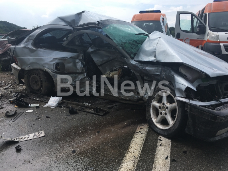 В момента на мястото все още има две линейки, които оказват първа помощ на пострадали хора. Спасителни екипи пък се подготвят да срежат "Фолксваген"-а, за да извадят тялото на загиналия от него.