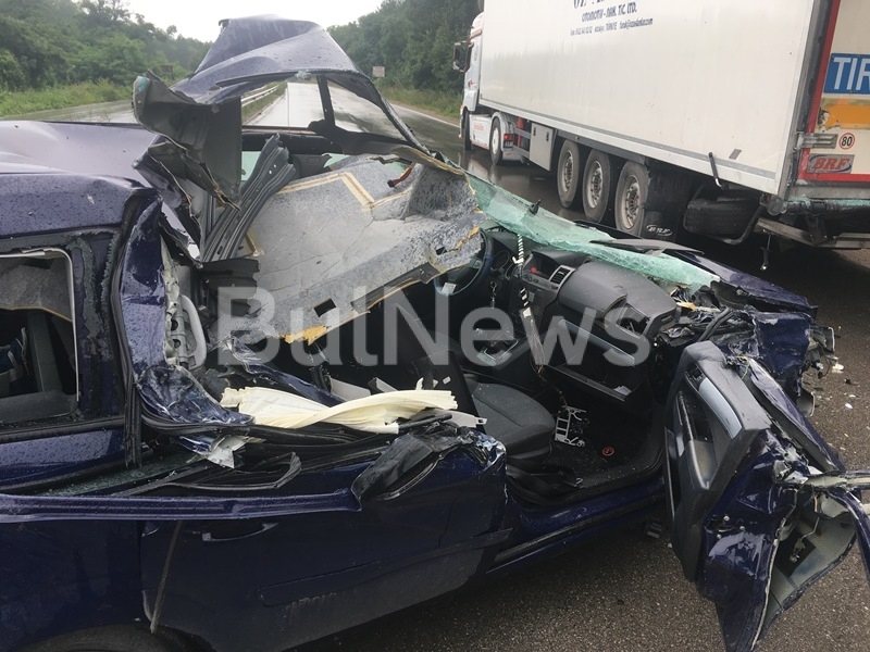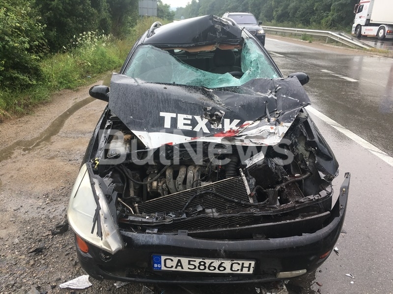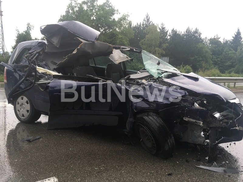 Ударът е бил толкова силен, че тавана на „Зафира“-та е откъснат, а предната част на „Форда“-а е напълно смачкана.