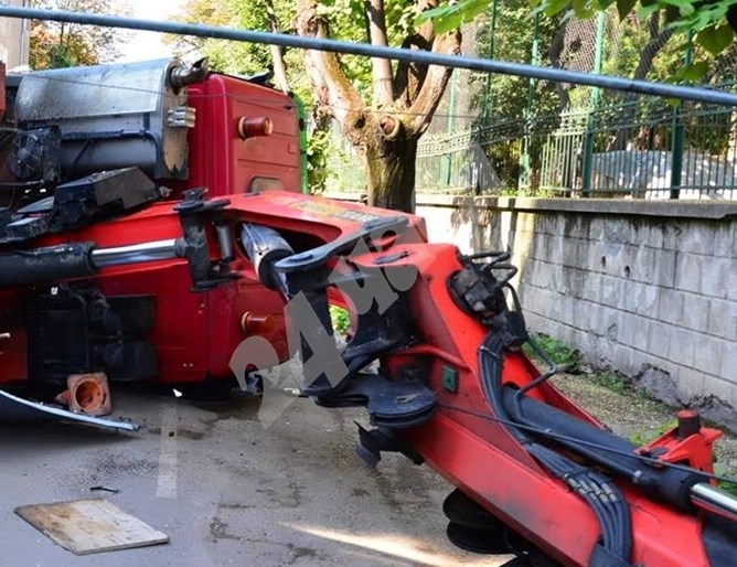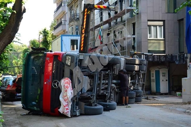 На метри от инцидента има строеж и най-вероятно тежкото возило е отивало там, но още не е ясно каква е причината да се обърне странично на улицата.