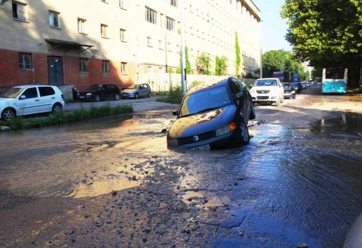 Пълно безумие в Шумен! Булевард погълна автомобил (снимки)