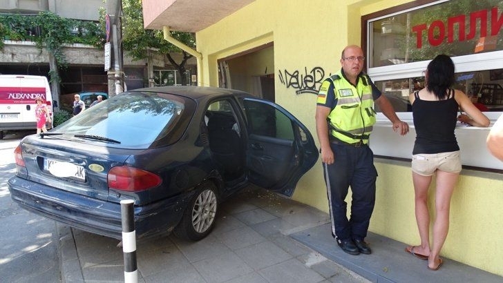 Кола се вряза в пекарна в центъра на Благоевград, шофьорът избягал