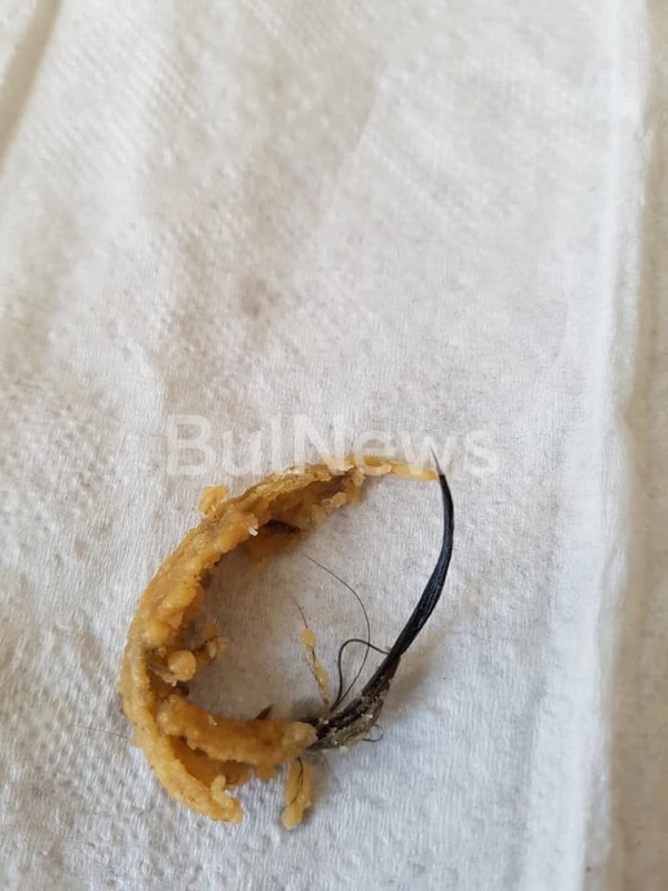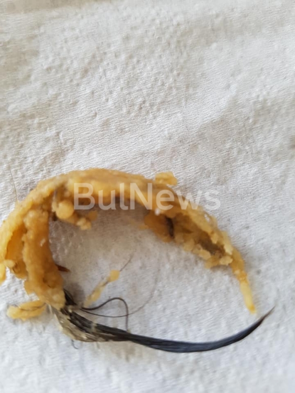 Гнусната случка се е разиграла вчера в бистро „Рибката“ в Крайдунавския парк в градчето. Местна жителка решила да си поръча порция хрупкава цаца и студена бира в горещия летен ден. Към храната обаче дошъл и ужасяващ бонус. Изпод рибките се показал дебел кичур черна коса. „Деликатесът“ бил замаскиран с панировка и е цяло чудо, че жената го видяла, преди той да се озове в устата й.