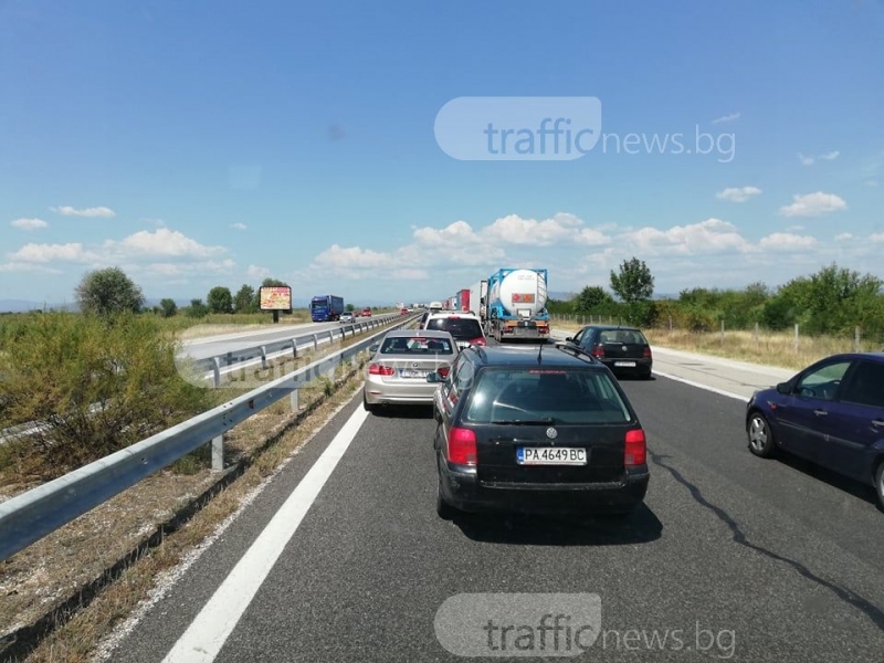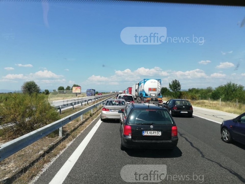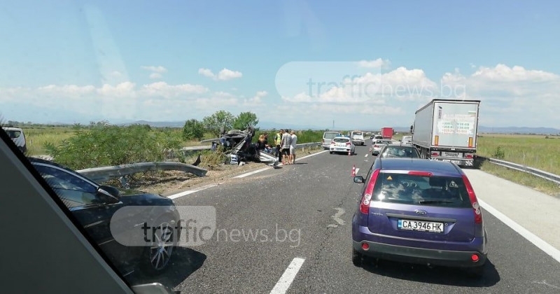 Тежка катастрофа на "Тракия"! Френски микробус помля кола, има пострадали /снимки/
