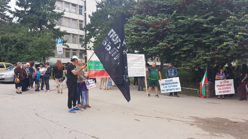 За да подкрепят здравните работници, пред МБАЛ „Христо Ботев“ се събраха и граждани. Част от тях държаха плакати, адресирани до директора на болницата и държавните управници.