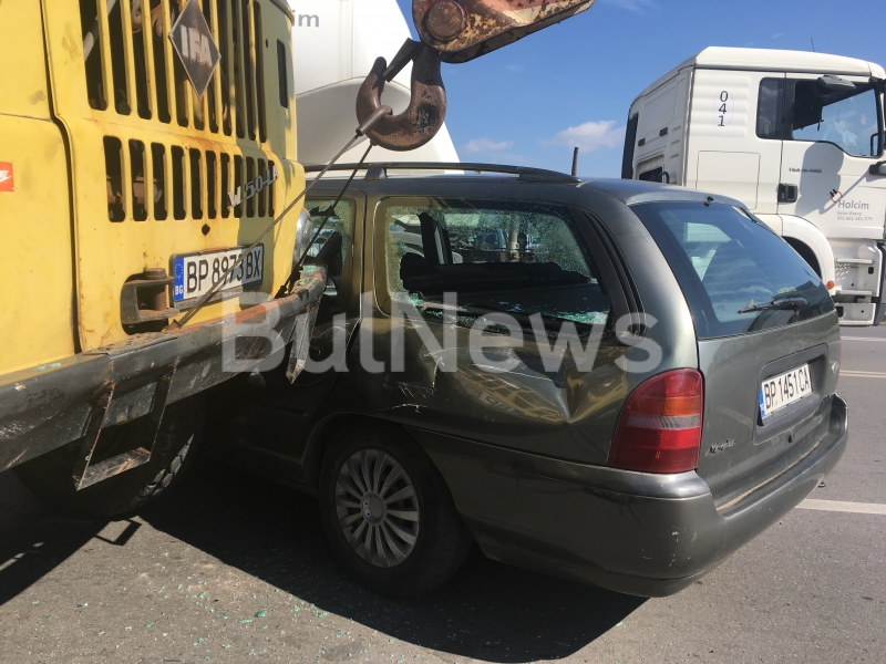 От последните минути! Кран влачи кола 10 метра на натоварен булевард във Враца /снимки/