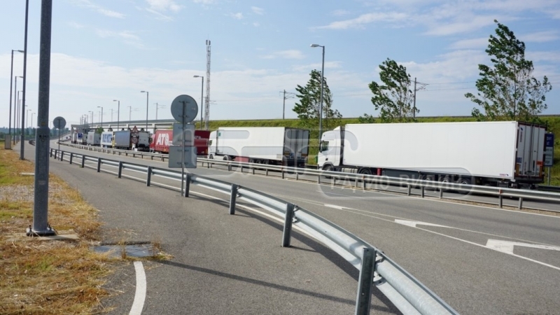 На четири ленти е обработката на товарни автомобили на граничния пункт, за да се намали колоната от чакащи.