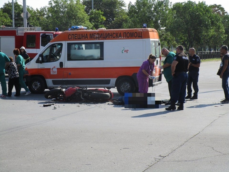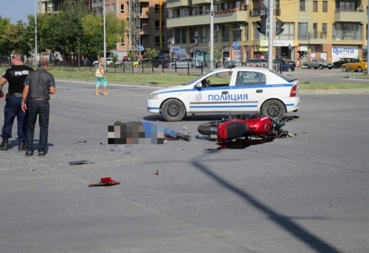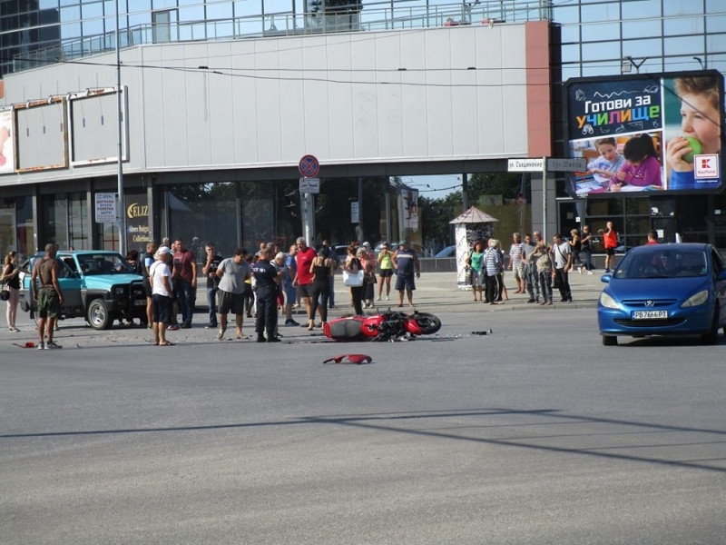 По първоначални данни на ул. "Шипка" джип Дайхацу предприел завой и отнел предимството на мотоциклет Кавазаки.