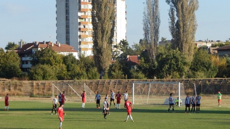 Головото шоу започна с попадение на капитана Ивайло Иванов във 2- та минута. В типичния си стил той засече центриране от ъглов удар с глава за 1:0. В 8- та минута Денис Николов направи 2:0 след, като завърши една хубава комбинация по крилото между Иван Макриев и Мартин Димитров. Най- красивият момент в мача дойде минути след гола, когато Денис Николов със задна ножица нацели напречната греда на вратата на Кристиян Пенчев. Борислав Борисов покачи на 3:0 в 13- та минута след красив прехвърлящ удар. Светослав Ангелов бе точен за 4:0 в 21- та минута, след хубаво разиграване в пеналта. Калоян Цветков направи резултата 5:0 в 35- минута с премерен удар след поредната атака на Бдинци.