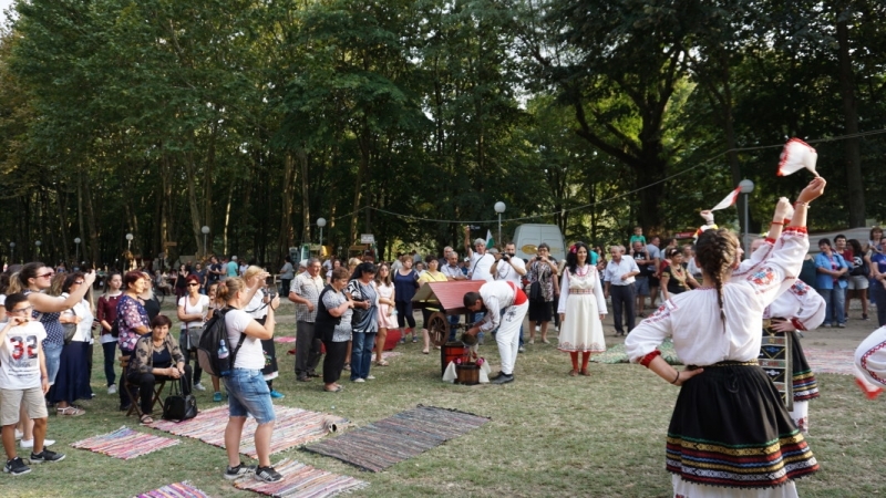 В изпълнението на ритуала се включиха десетки самодейци, които изпълниха фестивалната поляна в Козлодуй с кръшни хора под съпровод на жива музика.