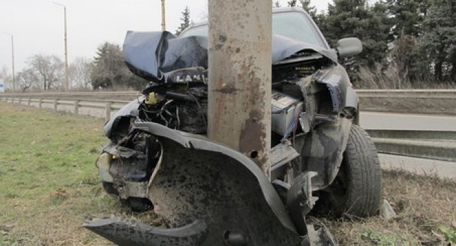 Хеттрик! Пиян шофьор без книжка се заби с крадена кола в стълб във Врачанско