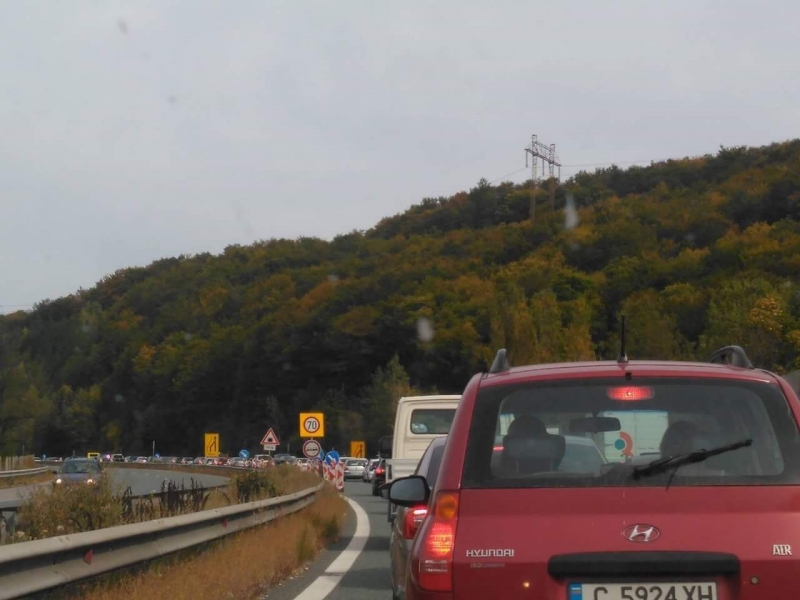 Повече от 10 километра е колоната от автомобили на автомагистрала ”Хемус” след изхода на София преди първия тунел, съобщиха читатели на агенция BulNews.bg. Причината са ремонтите по магистралата и многото автомобили, които напускат столицата заради почивните дни.