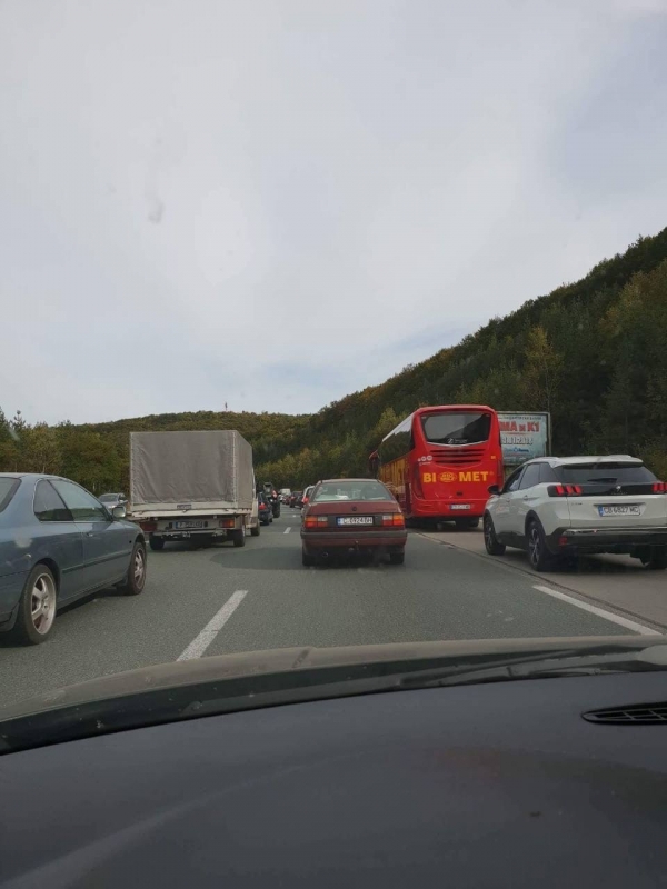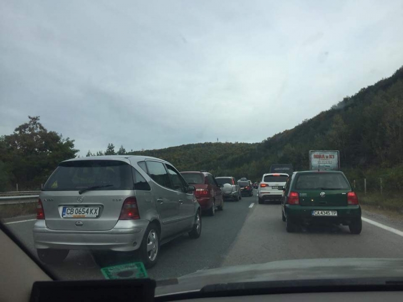 Адско задръстване на АМ "Хемус" след изхода на София преди първия тунел /снимки/