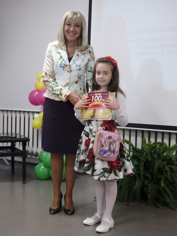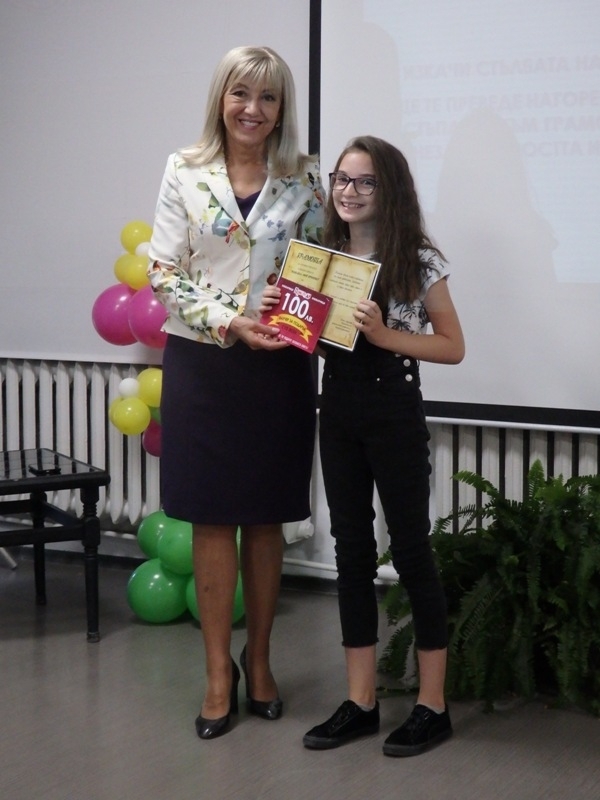 Тя връчи наградите на отличените в трите възрастови групи. Учениците получиха грамоти и ваучери за закупуване на книги и учебни помагала на обща стойност 660 лв.