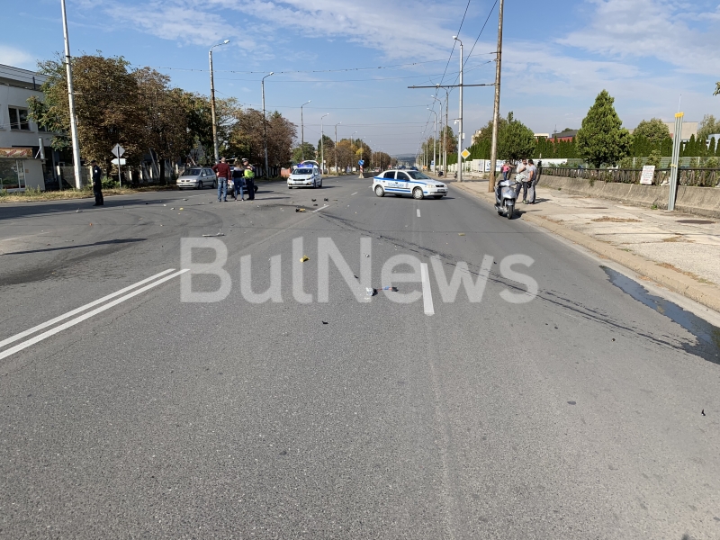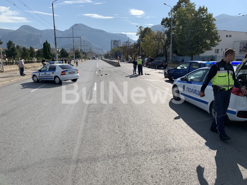 От последните минути! Моторист се размаза в кола на възлов булевард във Враца, линейка лети към Спешното /снимки/
