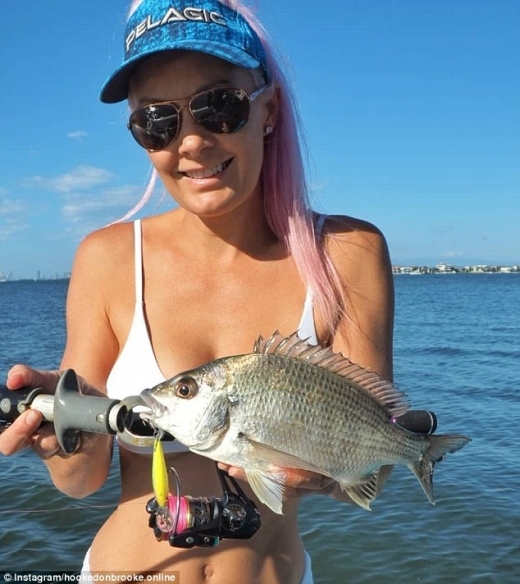 Става въпрос от Брук Фреклингтън от Куинсленд, Австралия, която често се появява с гигантски улов, докато носи бикини.