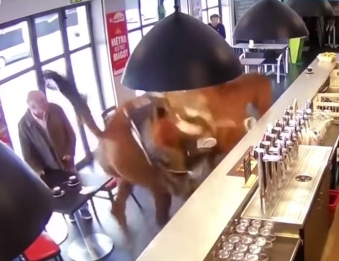 Избягал състезателен кон влезе в бар във Франция и предизвика хаос, защото клиентите се уплашиха и разбягаха, съобщи ЮПИ. Стефан Жасмин, собственикът на бара в Шантии, пусна запис от охранителните камери в Ютюб, от който ясно се вижда как конят влиза през вратата и препуска сред масите, а клиентите се разбягват, предава БТА.