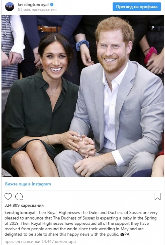 В публикацията се посочва, че бебето ще се роди през пролетта на 2019 година.