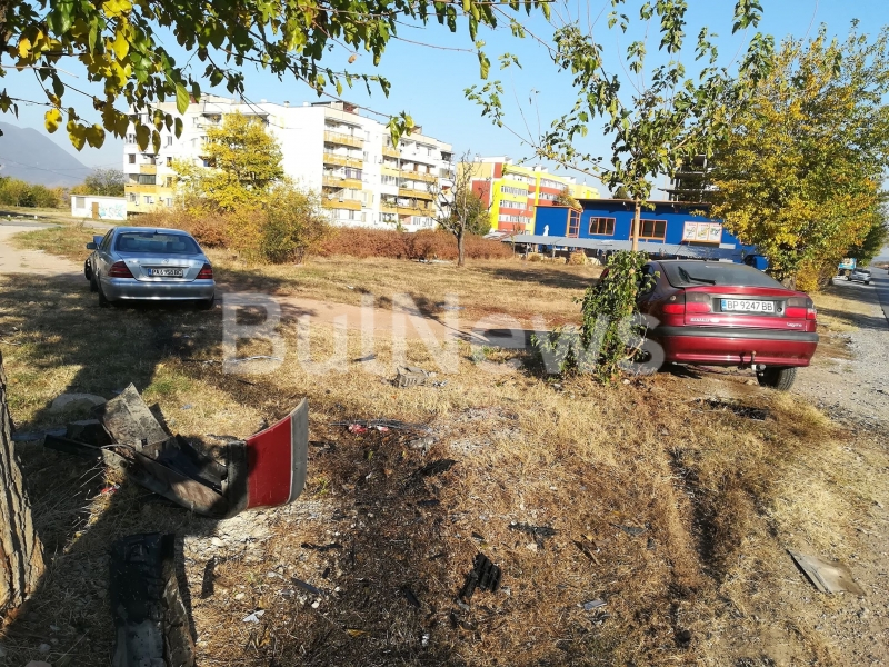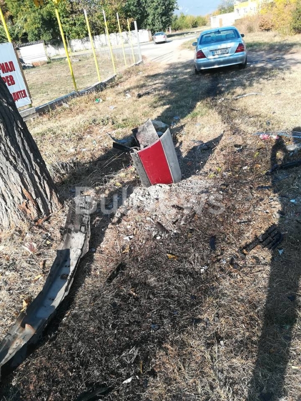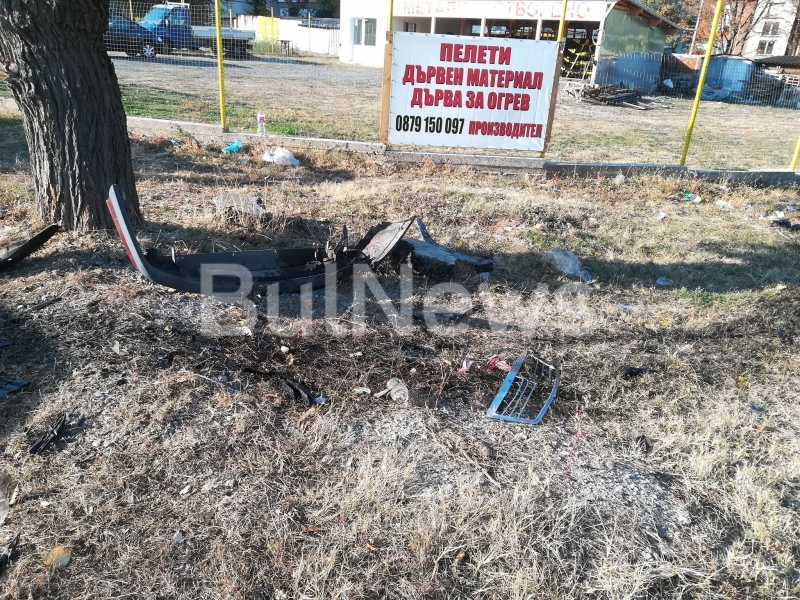 Ударът е бил толова силен, че и двете коли са излетели от пътя на поляната. По тревата има много разпилени чаркове от двете коли, както и разлив на масло.