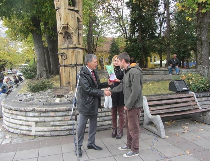 Кметът на Берковица Милчо Доцов подари плакет на Йордан Радичков-внук за принос в развитието на общината.